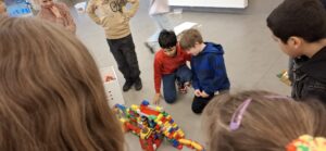 Vandaag was het tijd om ons nog eens kinds te voelen. We kregen allemaal materiaal te leen van de kleuterjuffen en leefden ons uit met